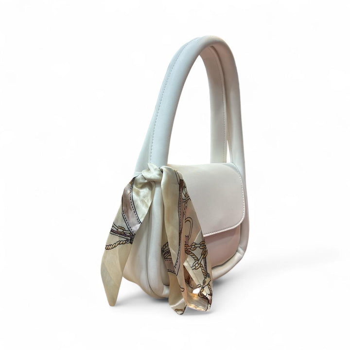 A soft symphony of style, Luna Whisper blends plush texture with minimalist charm. Crafted in smooth faux leather, its padded silhouette and rounded handle offer comfort and class. The silk scarf detail adds a graceful twist—perfect for day-to-evening transitions.