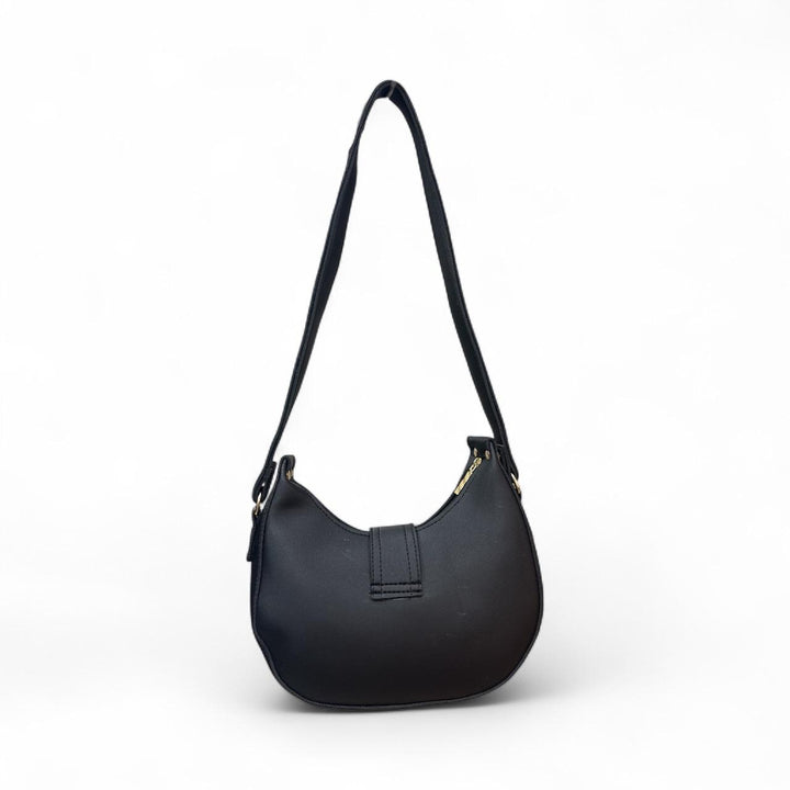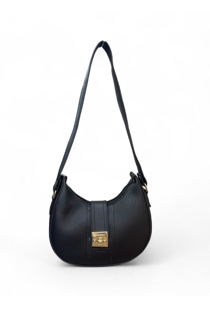 Noir Arc Women's Black Crescent Shoulder Bag with Gold Lock Detail